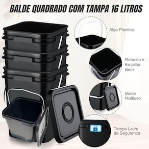 Balde plástico 16 litros, Balde quadrado 16 litros, Balde com tampa e alça, Balde industrial 16 litros, Balde para construção civil, Balde para tintas, Balde para obras, Balde resistente com tampa, Balde com lacre de segurança, Balde para mistura de materiais, Balde para resina epóxi, Balde polipropileno 16 litros, Balde com alça plástica, Balde para compostagem, Balde para graxa e óleo, Balde de armazenamento industrial, Balde para transporte de produtos químicos, Balde sustentável reciclado, Balde grande para construção, Balde de armazenamento seguro.