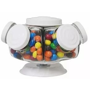 Especificações do Produto: Modelo: Baleiro Pequeno Giratório com 5 Compartimentos Ref: 274. Branco Material: Baleiro - Vidro / Tampa e Base - Plástico Cor: Baleiro - Incolor / Tampa e Base - Branco Compartimentos: 5 Capacidade: 250ml por gomo Uso: Decoração de festas, eventos, comércios, etc, com diversas guloseimas.