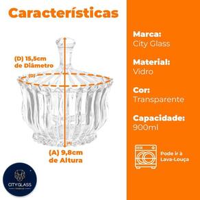 Bomboniere Baleiro Em Vidro Brasilia Transparente 900Ml - City Glass Bomb014