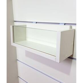 Baleiro/expositor para balas, parafusos e outros objetos que serve para painel canaletado. Acompanha suporte de aço para painel canaletado ou fixar na parede. Dimensões: comprimento: 61 cm altura: 13 cm profundidade: 11 cm. Ficha técnica: 100% mdf 15 mm com acabamento em fita de borda branca: o máximo em qualidade, durabilidade e resistência a riscos. Aparador de vidro temperado: 5x mais resistente que o vidro comum. Indicações: bomboniere, doceria, casa de materiais de construção, separador de itens Marca: Sr Fabrica De Moveis