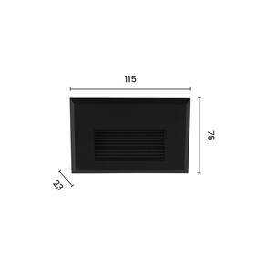 Especificações Gerais do Produto: Dimensões AxLxP (mm): 75x115x23 Material: Policarbonato Garantia: 1 ano junto ao fabricante Temperatura da Cor: 3000K - Luz Amarela Cor Principal: Preto Fluxo Luminoso: 103 lúmens Potência: 2W Voltagem: Bivolt Grau de proteção: IP65 Grau de Abertura: 122° Local de Uso: Externo