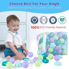 Características: 1. Material de alta qualidade, não tóxico, sem cheiro. Livre de ftalatos e BPA. 2. Perfeito para ambientes internos ou externos. 3. As bolas de brincar ajudam a desenvolver a coordenação olho-mão e promover atividades físicas. 4. Você também pode cultivar a percepção da cor das crianças. 5. Jogue bolas de boxe com barraca, cercadinho de brinquedo. Especificações: 1. Material: PE 2. Quantidade: 100 peças 3. Diâmetro: Bolas: 2,2" /5,5 cm Estrelas: 6,5 cm (o lado mais longo) 4. Cor: roxo claro, roxo pérola, azul claro, azul claro, rosa claro 5. Peso: 3 g (individual) A embalagem inclui: 100 bolas de plástico - Não tóxico e inofensivo, 100 estrelas e bolas livres de ftalatos; livre de BPA; livre de plástico de grafite e não PVC, certificação recomendada para idade 0+ - ??O diâmetro de cada bola é de 5,5 cm e 6,5 cm (o lado mais longo), o que é muito adequado para crianças. Cores brilhantes fascinam as crianças, brincam, contam e modelam jogos. Bolas de plástico podem melhorar as habilidades sensoriais e de coordenação das crianças. - É muito adequado para encher qualquer poço de bolas, barraca de brincar, sala de jogos, piscina de bebê, cerca de brincar e sala de balanço. Ideal para poços de bolas de bebês ou crianças, piscinas infantis, cercas internas e festas, brinquedos de banho de bebê. A bola não tem bordas ásperas para proteger os dedinhos. Fácil de manter limpo, parece fresco e interessante. - A mais recente combinação de cores lavanda, verde pérola, verde menta, verde macaron, transparente, obtenha estrelas e bolas de uma só vez, cores versáteis, adequadas para complementar qualquer piscina de bolas coloridas, e também é muito bom para combinar com outras bolas de boxe. - ? Bolsa de PVC/malha : uma bolsa resistente e reutilizável que pode armazenar todas as bolas do oceano e colocá-las juntas para liberar espaço de vida. Compre agora! Se você tiver alguma dúvida que o deixe insatisfeito com nossos produtos, a tempo de lidar com isso para você, e ficaremos satisfeito!