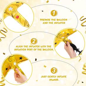- Como usar: primeiro, prepare o balão de alumínio e o inflador, coloque o inflador no orifício inflável dedicado do balão de alumínio; depois de cheio de ar, aperte a parte inferior do balão de alumínio