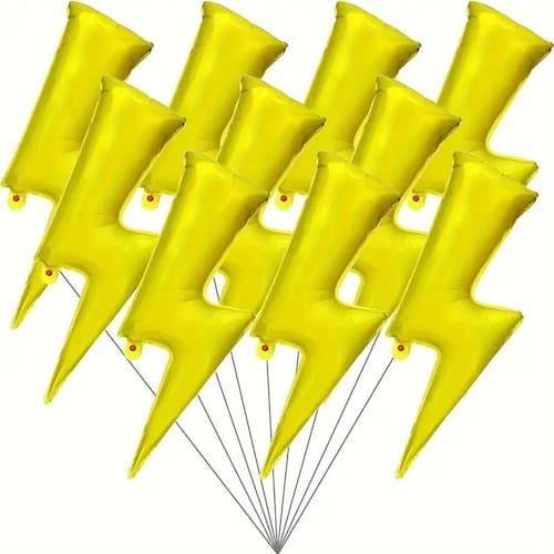 Design dinâmico de relâmpago: com um formato arrojado de raio, esses balões dourados certamente se destacarão e adicionarão uma explosão de energia a qualquer festa ou comemoração de aniversário. Material de alumínio durável: feitos de papel alumínio de alta qualidade, esses balões são fortes, duradouros e perfeitos para decorações internas e externas, garantindo que mantenham sua forma durante todo o evento. Perfeitos para festas temáticas: ideais para festas temáticas de super-heróis, esportes ou relâmpagos, esses balões são uma adição divertida e atraente ao aniversário de qualquer criança ou ocasião especial. Tamanho atraente: cada balão de raio mede 36x86 cm, tornando-os grandes o suficiente para serem o centro das atenções em sua celebração. Fácil de inflar e exibir: esses balões vêm com cordões convenientes e podem ser inflados facilmente, adicionando um toque dramático a locais de festas ou cenários fotográficos.
