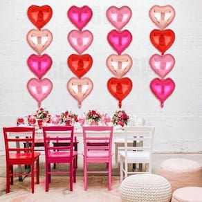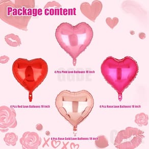 Por que escolher GGDE? - ?Lista de embalagem? 16 peças de balões de coração coloridos diferentes: vermelho, rosa vermelho, rosa, ouro rosa. - ?Uso?Fácil e conveniente de inflar e esvaziar. Aperte a entrada de enchimento após a conclusão da inflação. A saída de ar será selada automaticamente por sua cola autoadesiva correspondente das entradas dos balões. Feitos de material de folha de alumínio de alta qualidade, nossos balões de coração são duráveis e duradouros. - ?Presentes especiais? Balões de coração ótimos para decorações de festa do dia dos namorados, decoração de corredor de casamento, festa de aniversário, despedida de solteira, chá de panela, aniversário de casamento, chá de bebê, etc. Adequado para vários temas de festa e ocasiões. Adicione uma poderosa mensagem de amor e carinho às suas celebrações.