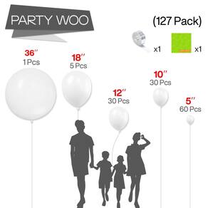 Balões brancos PartyWoo, 127 unidades de balões brancos foscos de tamanhos diferentes Pacote de 36 polegadas 18 polegadas 12 polegadas 10 polegadas e 5 polegadas para guirlanda de balões ou arco de balões como decoração de festa, balões brancos Y13 a 127 unidades de balões brancos TAMANHOS DIFERENTES: o pacote inclui balões de 36 polegadas (1 unidade), balões de 18 polegadas (5 unidades), balões de 12 polegadas (30 unidades), balões de 10 polegadas (30 unidades)), balões de 5 polegadas (60 unidades), kit de guirlanda e manual (1 conjunto) - NÃO TÓXICO E SEGURO: feito de látex, seguro e não tóxico, recomendado para uso com uma bomba manual de balão ou bomba elétrica de balão - O QUE FAZER PREENCHA COM: Os balões de látex cheios de AR permanecerão cheios por até 72 horas, enquanto com HÉLIO permanecerão cheios por 3-6 horas. Para obter melhores resultados de flutuação, encha o hélio 1 a 2 horas antes do evento - VÁRIAS APLICAÇÕES: balões ideais para guirlandas e arcos de balões como enfeites de aniversário, decorações de festas, decorações de casamento, enfeites de chá de bebê, decorações de aniversário, decorações temáticas de festas - ATENÇÃO E AVISO: NÃO encha demais os balões e evite queimaduras solares, superaquecimento, objetos pontiagudos e atrito excessivo. Controle a quantidade de ar inflado em cada balão para atingir o tamanho ideal do balão
