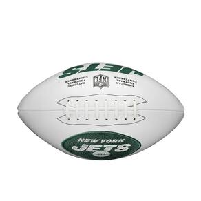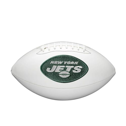 Balón de Fútbol Americano Wilson NFL Live Signature Autografiado - Tamaño Oficial, New York Jets - WILSON LIVE: Equipado con Wilson Live, este balón se puede escanear con tu teléfono y conecta con la comunidad de fútbol americano de Wilson. - SUPERFICIE PARA FIRMA: Listo para autógrafos de todos tus héroes deportivos. - COLOR: Superficie blanca limpia para servir como lienzo en este balón no para juego. - EQUIPO OFICIAL: Marcado con el logo de tu equipo favorito de la NFL. - NFL OFICIAL: Diseñado para seguir un estilo similar al de los balones oficiales de la NFL. - Tipo de deporte: Fútbol Americano