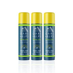 Oars + Alps Protetor labial sem brilho e protetor solar FPS 18, cuidado labial com aroma de limão ilha, resistente à água e ao suor, 4,3 g cada, pacote com 3