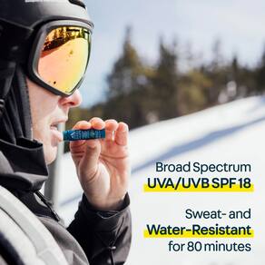- Bálsamo labial hidratante com FPS 18: repare, hidrate e proteja seus lábios, seja nas encostas ou na praia com UVA/UVB FPS 18 de amplo espectro.