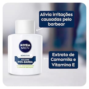 Dermatologicamente testado, NIVEA MEN Bálsamo Pós-Barba Sensitive é indicado para as pele mais sensíveis. Com 0% de álcool etílico, a fórmula suave deste pós-barba é enriquecida com a combinação de camomila e vitamina E, ingredientes que, respectivamente, acalmam a pele e tem ação antioxidante.