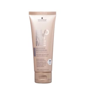 Bálsamo Restaurador Schwarzkopf Blondes Wonders BlondMe 75ml Leave-in bálsamo restaurador para cabelos loiros ou descoloridos. Schwarzkopf Professional BlondMe Blonde Wonders com efeito anti-frizz e proteção térmica para fios que necessitam de reparação de pontas. O Bálsamo Restaurador Schwarzkopf Professional BlondMe Blonde Wonders conta com a tecnologia Bond Creation 3D, que ajuda a criar novas pontes, previne a quebra, reduz o frizz e sela as pontas espigadas deixando o cabelo suave e brilhante. Também tem filtro UV que protege os fios da exposição ao sol. Fios livres de frizz e com proteção térmica e UV. Conselho de Aplicação Coloque uma pequena quantidade do bálsamo cabelo seco com toalha para desembaraçar instantaneamente. Também pode ser no cabelo seco para um toque final. Não enxaguar..