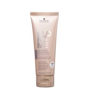 Bálsamo Restaurador Schwarzkopf Blondes Wonders BlondMe 75ml Leave-in bálsamo restaurador para cabelos loiros ou descoloridos. Schwarzkopf Professional BlondMe Blonde Wonders com efeito anti-frizz e proteção térmica para fios que necessitam de reparação de pontas. O Bálsamo Restaurador Schwarzkopf Professional BlondMe Blonde Wonders conta com a tecnologia Bond Creation 3D, que ajuda a criar novas pontes, previne a quebra, reduz o frizz e sela as pontas espigadas deixando o cabelo suave e brilhante. Também tem filtro UV que protege os fios da exposição ao sol. Fios livres de frizz e com proteção térmica e UV. Conselho de Aplicação Coloque uma pequena quantidade do bálsamo cabelo seco com toalha para desembaraçar instantaneamente. Também pode ser no cabelo seco para um toque final. Não enxaguar.. Marca: Não Informado
