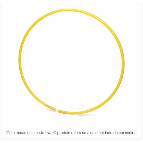 Descritivo detalhado: Bambolê de mangueira plástica, resistente e colorida, com 60 cm de diâmetro e 5 guizos metálicos em seu interior.