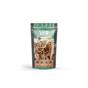 Contém 80 gramas de banana prata. Dificuldade: fácil. Apropriado para cães e gatos saudáveis de todos os portes. Composição básica: banana prata desidratada. Níveis de : Umidade máx. g/kg; Proteína bruta min. g/kg; Extrato etéreo min. g/kg. Petisco 100% natural, feito com ingrediente de origem vegetal e desidratado lentamente em temperatura controlada garantindo maior durabilidade e conservação do produto sem uso de químicos.