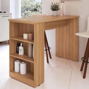 A Bancada Jade conta com uma boa qualidade estrutural, ela é produzida apartir de chapas de MDP, material responsável por proporcionar ao mobiliário toda a firmeza e sustentação necessária. Além disso, ela é muito funcional e vai facilitar a organização e o armazenamento das suas coisas, isso pois conta com com 3 prateleiras ideais para colocar obejtos ou utensilios que você mais utiliza. Cor: Marrom