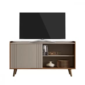 Um produto que se encaixa em qualquer lugar do seu ambiente, conta com muita delicadesa e charme. A sua porta de correr é em MDF com canais e pintura P.U., seus pés são estilo retrô, suporta TV de até 60.