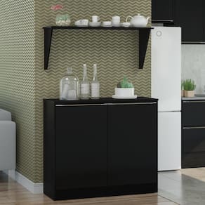 Produzida em MDP com pintura UV, possui duas portas com prateleira interna e um amplo espaço para organizar utensílios e mantimentos.
