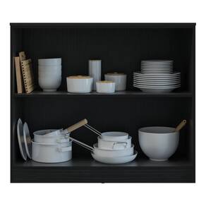 O tampo em BP preto 15mm e os puxadores perfil em alumínio com ponteiras ABS traduzem a modernidade e elegância do design moderno.