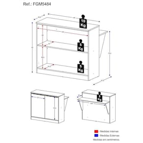 Além de poder utilizar este móvel como bancada, é possível usá-lo também como divisor de ambientes, já que a mesa de apoio pode ser montada como prateleira decorativa.