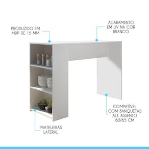 A Bancada Multiuso foi desenvolvida para atender todas as suas necessidades do dia a dia, otimizando seu ambiente com versatilidade, conforto e beleza. Dispõe de um design atual inspirado nas cozinhas . O diferencial fica por conta das prateleiras lateral para organizar utensílios e mantimentos para que fiquem sempre acessível no uso diário. Além disso são perfeitos para banquetas médias com altura do assento entre 60/65 cm. A Bancada é produzida com materiais de excelente qualidade, garantindo a sua durabilidade e vida útil. O melhor em móveis no design atual aliando conforto, qualidade e ótimos preços, só na Menu Móveis!