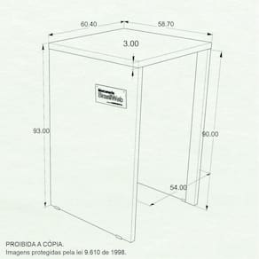 Medidas do produto: Largura: 60 cm Profundidade: 60 cm Altura: 93 cm Utilizamos alta tecnologia na fabricação do móvel que o deixa resistente à água. O Produto é de excelente qualidade, feito na mesma qualidade de móveis planejados de 1º linha.
