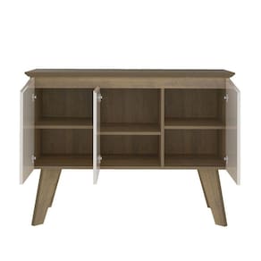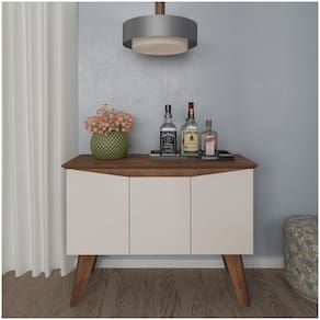 Bancada Buffet Oásis Pinho/ Off White 3 Portas Tampo com Borda Invertida e 4 Pés - Artely