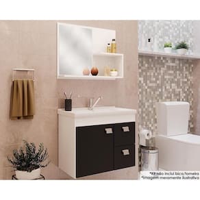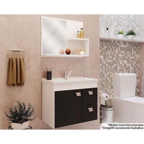 Conjunto de Banheiro Balcão Suspenso Isa c/ Cuba 55cm e Armário c/ Espelho Branco/Preto - MGM Marca: MGM