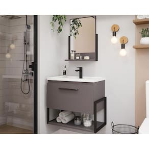 Material de Estrutura - Estrutura 100% MDF - BP Liso - Metalon Tipo de Pintura - Pintura Eletrostática a Pó Tipo de Acabamento da Pintura - Pintura Fosco Vantagens Extra dos Móveis de Banheiro e Lavanderia - Possui Espelho - Sim Material da Cuba - Cuba em Mármore Sintético
