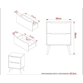 Quantidade de Gavetas - 2 Gavetas Tipo de Corrediça - Corrediças Metálicas Tipo dos Pés - Pés em ABS/PVC