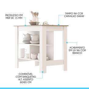 A Bancada de Cozinha foi desenvolvida para atender todas as suas necessidades do dia a dia, otimizando seu ambiente com versatilidade, conforto e beleza. Dispõe de um design atual inspirado nas cozinhas americanas. O charme fica por conta da facilidade de ter todos os seus utensílios a mão de um lado e espaço para banquetas do outro, transformando os momentos em família. Produzida com materiais de excelente qualidade, garantindo a sua durabilidade e vida útil. O melhor em móveis no design atual aliando conforto, qualidade e ótimos preços, só na Menu Móveis! CARACTERÍSTICAS TÉCNICAS: - Produzido em MDP de 15 mm - Acabamento UV na cor Branco - Tampo na cor Carvalho Dakar INFORMAÇÕES TÉCNICAS: Altura: 92,5 Cm Largura: 103 Cm Profundidade: 68 Cm INFORMAÇÕES ADICIONAIS: *ATENÇÃO: Não trabalhamos e não nos responsabilizamos pela montagem do móvel. Antes da montagem conferir se o produto está de acordo com o que comprou, produto montado e danificado pela montagem não será aceito troca. Montagem e instalação por conta do comprador. **As imagens ambientadas são meramente ilustrativas e podem apresentar itens que não compõe o produto. As cores do produto podem variar de acordo com o monitor, a iluminação do ambiente ou sua percepção visual. ***Limpeza: Deve ser feita com pano macio e seco ou levemente umedecido com água e sabão neutro. Não devem ser utilizados abrasivos como palha de aço e objetos cortantes. Garantia para defeitos de fabricação conforme Código de Defesa do Consumidor. Ean: 7805295030564 Ean: 7805295030564
