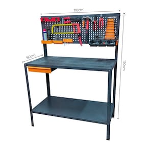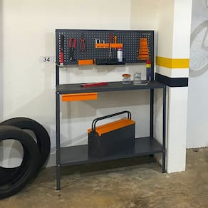 Bancada de Trabalho c/ Acessório, feita em chapa de aço de baixo teor de carbono, c/ tratamento químico fosfatizante e antiferruginoso e pintura eletrostática a pó, o que garante uma proteção eficaz contra corrosão e um acabamento de alta qualidade. Desenvolvida p/ atender às demandas exigentes, seja no ambiente doméstico ou de trabalho, tem capacidade de carga de até 250 kg distribuídos. Por ser compacta, é ideal para espaços reduzidos.
