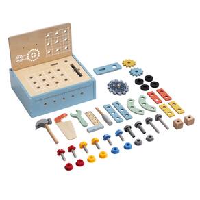 COMPOSIÇÃO: 43 peças Feito em madeira Tamanho da Bancada montada (C x L x A): 30 x 25,5 x 27cm - A bancada também pode ser utilizada como uma maleta de transporte, com todas as suas peças dentro, totalmente fechada como uma caixa, e com alça para segurar.