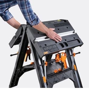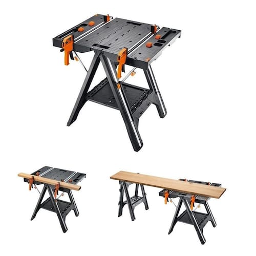 - Referencia: WX051 - Marca: Worx - Função: bancada multiuso - Capacidade máxima do grampo: 457mm - Tamanho da mesa: 787 x 635 x 813mm - Tamanho da mesa dobrada: 635 x 127 x 889mm - Peso 13.5 kg - Capacidade de trabalho 130 kg