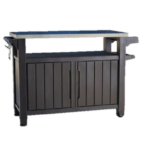 A procura de móveis auxiliares para o seu churrasco, acaba aqui. A Keter traz direto da Italia a Bancada Buffet nas versões de 1 e 2 portas para você fazer charme no churrasco, seja no jardim de casa, no terraço ou piscina.