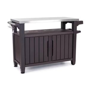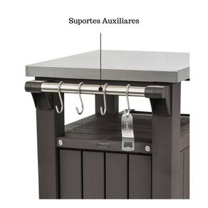 Os móveis de churrasqueira são úteis e ideais para eventos ao ar livre, inclusive aquele churrasco na praia ou na beira da piscina. Cozinhar e organizar seu churrasco vai ser muito mais fácil com esta pequena estação de servir. A bancada buffet Keter é feita de resina resistente às intempéries e possui uma superfície superior durável que resiste a todos os tipos de tarefas de cozinha. Este móvel facilita o trabalho de cozinhar ao ar livre, pois é fácil de movimentar e guardar. O pequeno armários tem capacidade de armazenamento de 207L, para acomodar louças, utensílios e artigos culinários. A mobilidade é facilitadas por rodinhas, facilitando seu transporte.