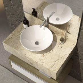 A Bancada para Banheiro é fabricada em porcelanato técnico polido. Possui baixíssima absorção de umidade e é resistente a riscos e manchas. Produto vem com furação de 42mm de diâmetro para fixação da cuba de apoio e 32mm para fixação da torneira. Acompanha cantoneiras de fixação na parede, parafusos e buchas de nylon. Acompanha frontão frontal e frontão lateral. Ideal para compor com os armários Max 80 da marca Bumi Móveis. Bancada compatível também com armários que tenham as seguintes medidas: largura = 80,0cm e profundidade = 50,0cm. Produto sai montado de fábrica, basta apenas fixá-lo na parede e acompanha Manual de instalação. Garantia de 12 meses para defeitos de fabricação. Não acompanha cuba e nem torneira. Acabamento: Verniz Acompanha Cuba: Não Acompanha Manual de Instalação: Sim Acompanha Torneira: Não Altura: 32 cm Ambiente Principal: Banheiro Comprimento: 80 cm Cor: Travertino Cor do Produto: Travertino Diâmetro do furo: 32 mm Diâmetro para válvula: 42 mm Escala de Brilho: Brilhante Estilo: Moderno Formato: Retangular Garantia do Fornecedor: 12 meses Itens Inclusos: 1 Bancada, Kit Ferragens E Manual De Instalação. Largura: 80 cm Linha ou Coleção: Max Manual de Montagem e Instalação: https://product-hub-prd.madeiramadeira.com.br/661098/documents/079fe54f-2357-4fba-8ba1-cbb4f91c7abe9426d748952bancadamax60e80.pdf Material Principal: Porcelanato Técnico Polido Necessita Montagem: Não Origem do Produto: Nacional Peso: 16,808 kg Possui furação para torneira: Sim Possui ladrão: Não Possui Prateleiras: Não Possui Sifão: Não Profundidade: 50 cm Recomendações de Uso, Manutenção e Limpeza: Para limpeza e conservação utilizar somente detergente neutro. Nunca utilizar qualquer tipo de cera. Não utilizar produtos abrasivos (esponjas de aço ou saponáceos). Suporta Até (kg): 10 kg Suporte para Toalheiro: Não Ean: 7908439683692