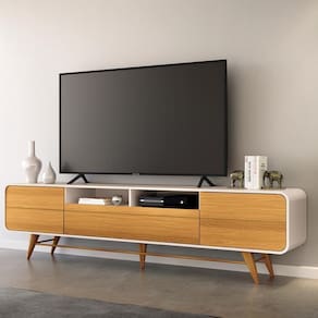 A Bancada Europa é a escolha ideal para quem busca um móvel sofisticado, funcional e com design contemporâneo. Projetada para TVs de até 85 polegadas, ela possui cantos arredondados que garantem um visual elegante e refinado. As portas laterais contam com sistema de abertura fecho toque, proporcionando praticidade no dia a dia, enquanto a porta central possui dobradiças metálicas e pistão a gás, garantindo um manuseio suave.