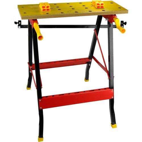 Bancada de ferramentas portátil, com barra transversal onde pode ser utilizado como porta ferramentas. Ideal para trabalhos como lixar , pintura e outros. Caixa fechada : comprimento 91 cm , largura 13 , altura 13. Peso 6,37