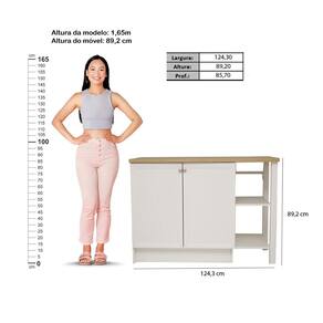 Bancada Gourmet Ilha Cozinha Ditália 2 Portas CD-1028 Cozy - Branco