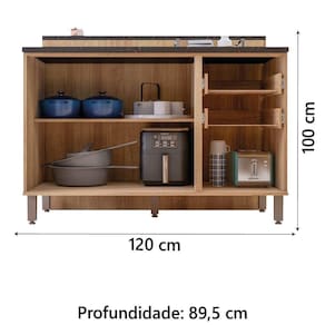 MODELO: Bancada Ilha de Cozinha Ripada Com Tampo 3 Portas 2 Gavetas 1,20m Isis