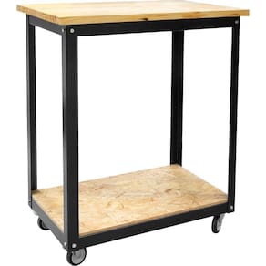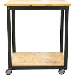 Possui estrutura em aço com tratamento anticorrosivo e pintura eletrostática a pó, com tampo de 25 mm em madeira de pinus fingada e envernizada, e prateleira inferior em OSB. Permite a fixação de uma gaveta, vendida separadamente, de forma que os itens necessários estejam sempre à mão. Conta com 4 rodízios de 3'', que permitem o deslocamento necessário ao trabalho.
