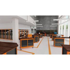 A Bancada móvel para ferramentas possui estrutura com paredes reforçadas, puxador ergonômico, rodas de borracha e sistema especial de travamento de gavetas, o que proporciona maior segurança, parado ou em movimento. Outra facilidade está nas corrediças telescópicas, que permitem a abertura de 100% das gavetas, facilitando o acesso às peças. Capacidade de carga estática: 700 kg. Porque não basta ter a ferramenta certa, é preciso ter ela sempre à mão.