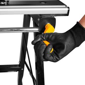 Conteúdo Embalagem:1 Bancada multiusoDestaques e diferenciais:Possui sistema dobrável e manopla para ajuste da base abre e fecha , conferindo maior praticidade no uso e maior facilidade para armazenamento. Possui mordentes que permitem várias posições de ajustes e trava para ajuste rápido da base.Aplicações e dicas de uso:Indicada para trabalhos de reparos ou manutenções, auxiliando na fixação ou apoio de peças e objetos com maior praticidade e segurança. Proibido uso para sustentação de pessoas e/ou animais.Características Técnicas:Altura da bancada multiuso aberta: 790 mm s/ mordentes - 840 mm c/ mordentes Largura da bancada multiuso aberta: 480 mm s/ manípulos - 595 mm c/ manípulos Comprimento da bancada multiuso aberta: 600 mm Capacidade de carga kgf : 100 kgf Material da base da bancada multiuso: Alumínio Material da estrutura da bancada multiuso: Chapa metálica Acabamento da estrutura da bancada multiuso: Pintura a póGarantia:Garantia legal: 90 dias + Garantia contratual: 3 meses Ean: 7893946558802