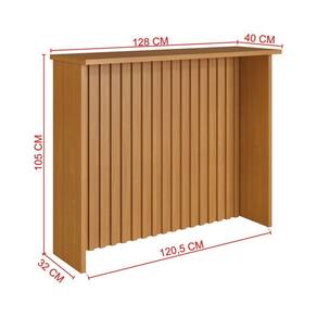 Bancada Munique Ripada 1,28 Freijó - Indekes A Bancada Munique Ripada - Indekes tem um design elegante e funcional, criando uma atmosfera rustica em sua casa com sua beleza unica levando ares para sua ões do Produto montado:Altura: 105 cmLargura: 128 cmProfundidade: 40 cmObservações:- Com Ripas de Verdade- Pintura Ultravioleta na cor Freijó