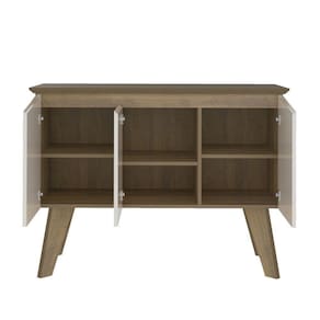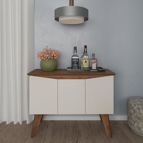 Bancada Buffet Oásis Pinho/ Off White 3 Portas Tampo com Borda Invertida e 4 Pés - Artely