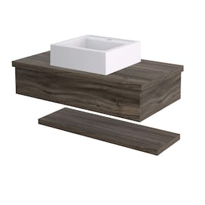 Bancada para Banheiro 80cm com Cuba Q39 e Prateleira 805W Metrópole Compace Carvalho Dark - Marrom