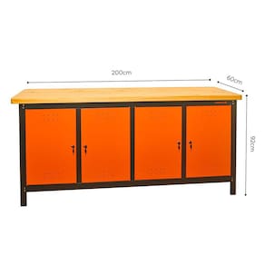 Bancada Profissional Fechada 2 m, em chapa de aço de baixo teor de carbono, c/ tratamento químico fosfatizante e antiferruginoso e pintura eletrostática a pó, o que garante proteção eficaz contra corrosão e acabamento de alta qualidade. Visando atender à demanda exigente, a capacidade máxima de carga distribuída é 500 Kg .