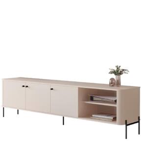 Possui pés e puxadores em metal, a base e topo em MDF 15mm, 3 porta e 1 prateleira.