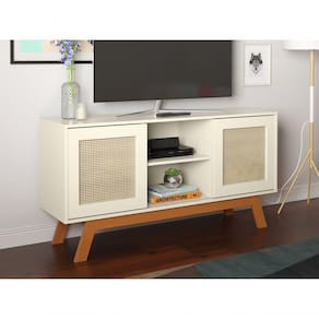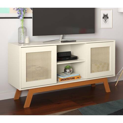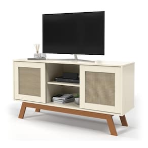 Bancada Para Tv Viena Portas Em Palha Sintética Off White