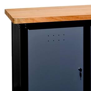 Confeccionadas em aço, colunas reforçadas trazendo força e robustez. Desenvolvidas para suportar o trabalho pesado, com tampo em pinus 40mm, que ainda podem ser revestidos com proteção galvanizada (vendido separadamente). Prateleira interna proporcionando melhor aproveitamento de espaço, suportando até 700 distribuídos. Possuem portas com fechadura, mais organização e segurança de itens necessários. Fechamento silencioso com batentes de borracha. Tudo o que você precisa.